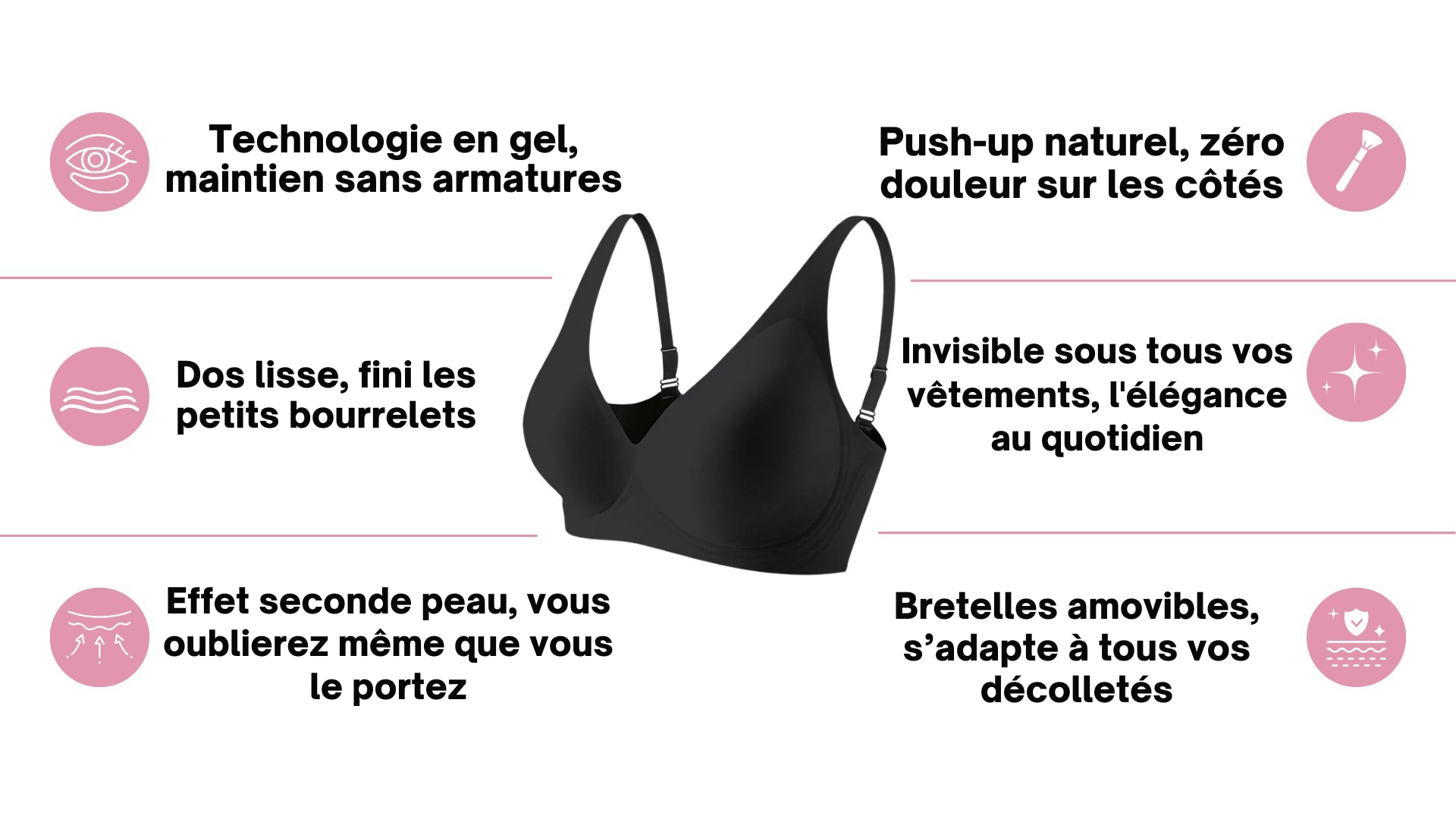 Conçu avec une technologie gel innovante, ce soutien-gorge offre un effet "seconde peau" sans aucune armature pour un confort absolu.